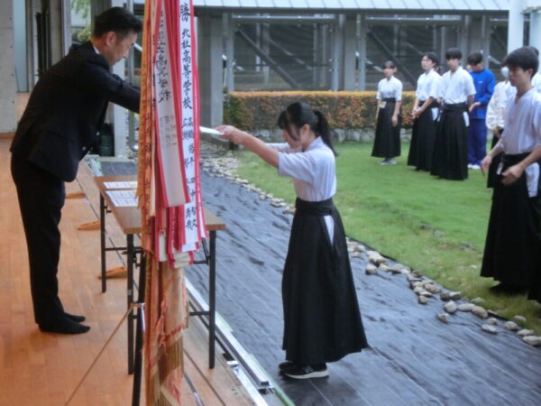 この結果、男女団体の部と、男子個人の部で、11月に群馬県で行われる関東選抜大会の出場権を獲得することができました。新人戦では男女とも1回戦で失敗し苦しい試合となりましたが、最後まで諦めずよく盛り返しました。本大会までにさらに精進し、山梨県の代表として、出場できなかった他校の分まで頑張ってきたいと思います。