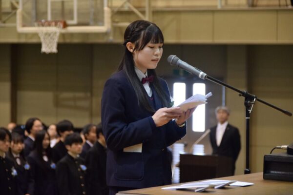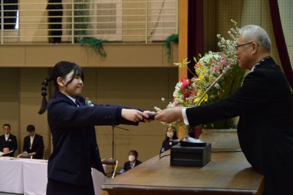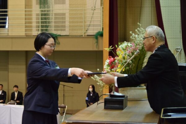 第78回卒業証書授与式が行われました。厳粛な雰囲気の中、普通科157名、探究科56名に卒業証書が授与されました。君が代、蛍の光、校歌の歌声が体育館内に響き渡り、とても心温まる式でした。3年生の皆さん、ご卒業おめでとうございます。