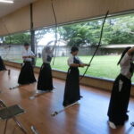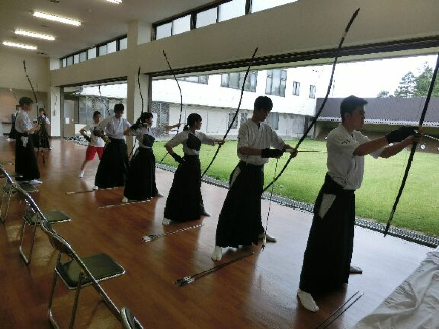 ③素引き練習…矢を番えずに弓を持ってきれいに引く練習。