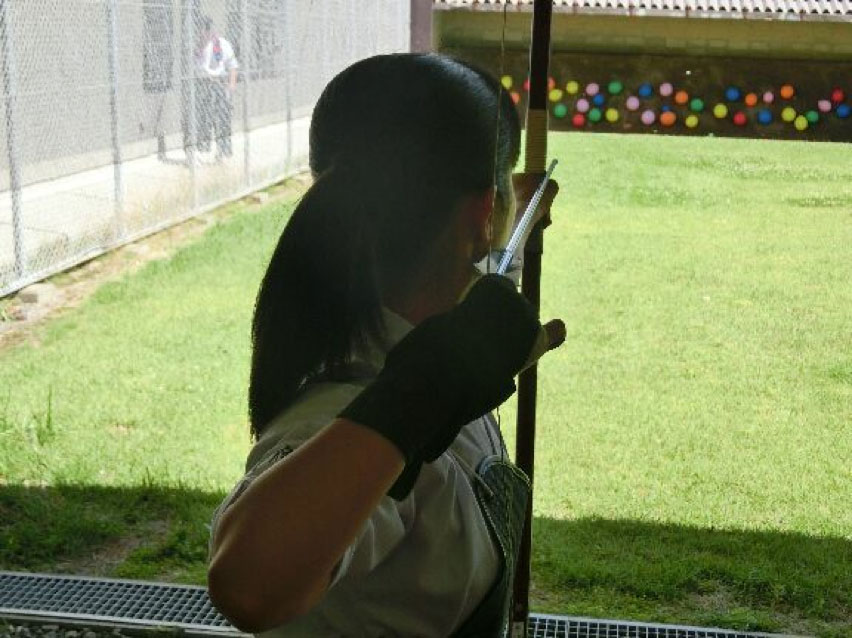 ⑤矢道練習…15m程度の所から的に向かって矢を放つ。