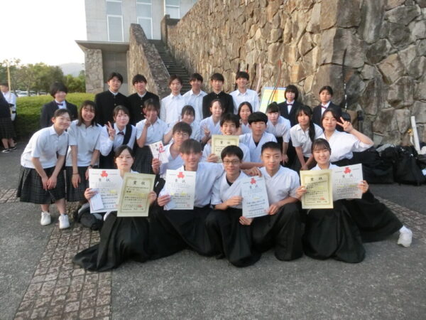 令和7年度弓道部員(1〜3年生)小瀬武道館にて