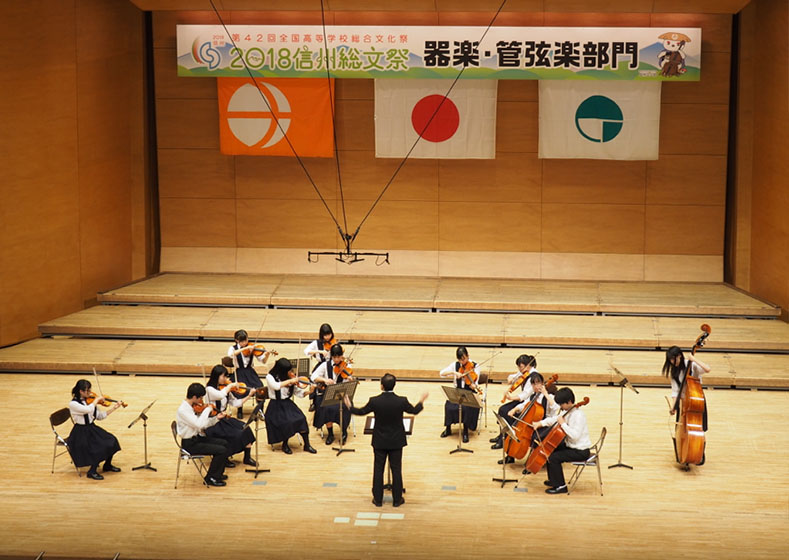 1年間の活動としては、学園祭での演奏、11月の芸文祭、他にも様々な場面で演奏しています。皆で楽しく活動しています。一緒に弦楽器を弾きませんか?